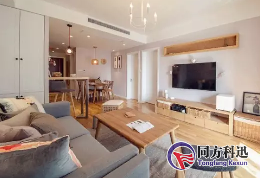 3、如果客、餐廳在同一面,所以將出風口做在另一面墻的吊頂上,可以同時滿足兩個使用環境。